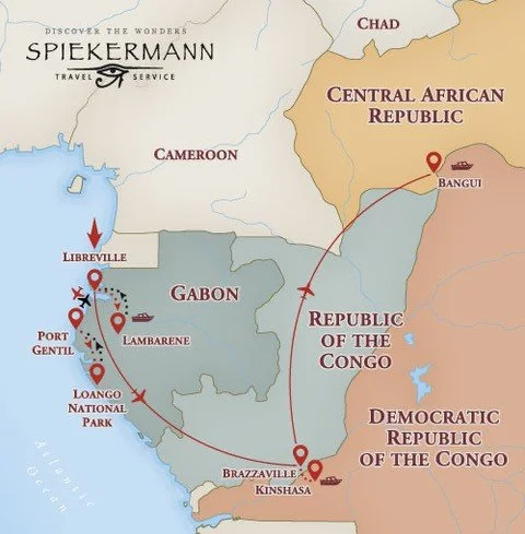 Beginning in Libreville, Gabon, see some fine examples of French architecture and witness a traditional Bwiti spiritual ceremony. Explore the country’s beautiful lakes by boat and spend a few nights in Loango National Park to participate in exciting wildlife safaris to spot forest elephants and buffalos, monkeys, hippos, crocodiles, and many endemic birds. For those who would like to see the Western Lowland Gorillas up close, there will be an opportunity to spend the day tracking these majestic primates.